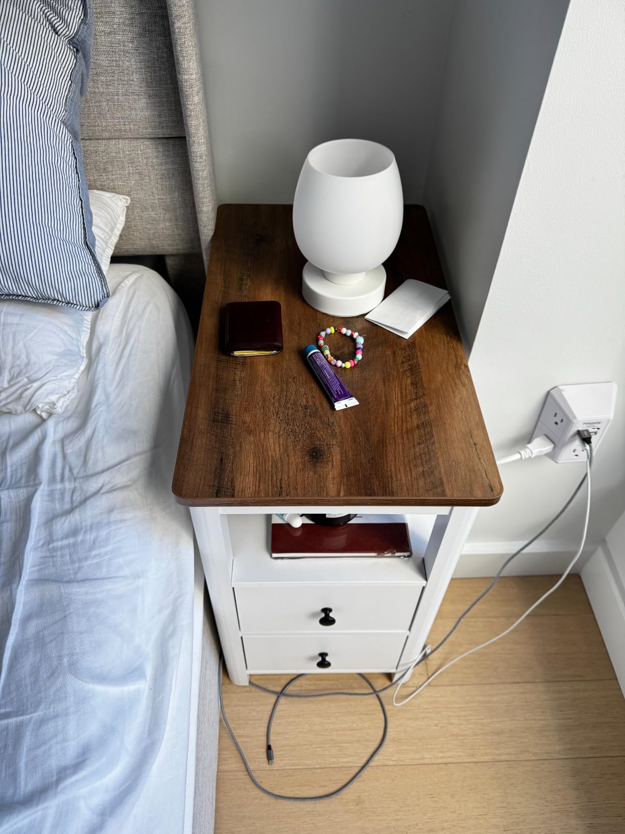 - [Stable, Strong, Sturdy] Made of high-quality particleboard and MDF panels, this narrow bedside table provides strong, stable, and long-lasting support for your items (max. total load 200 lb)